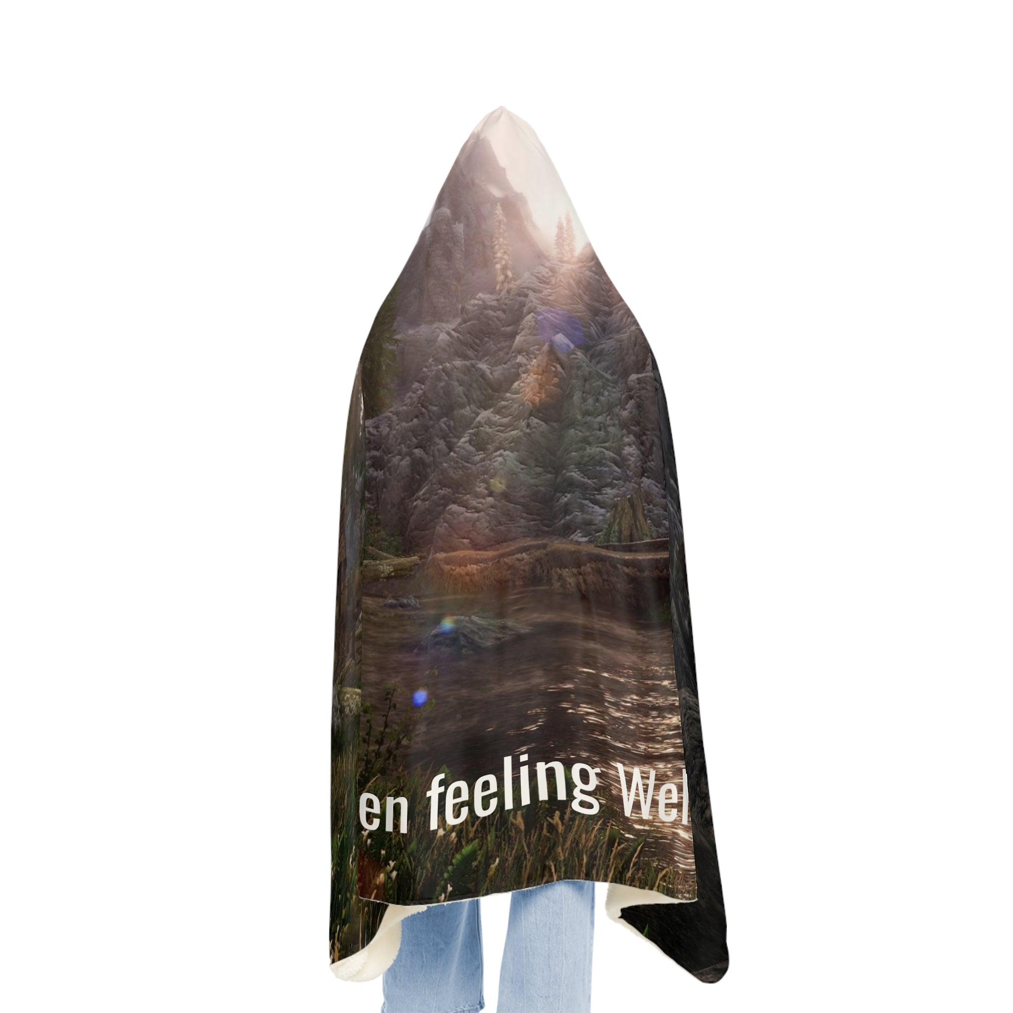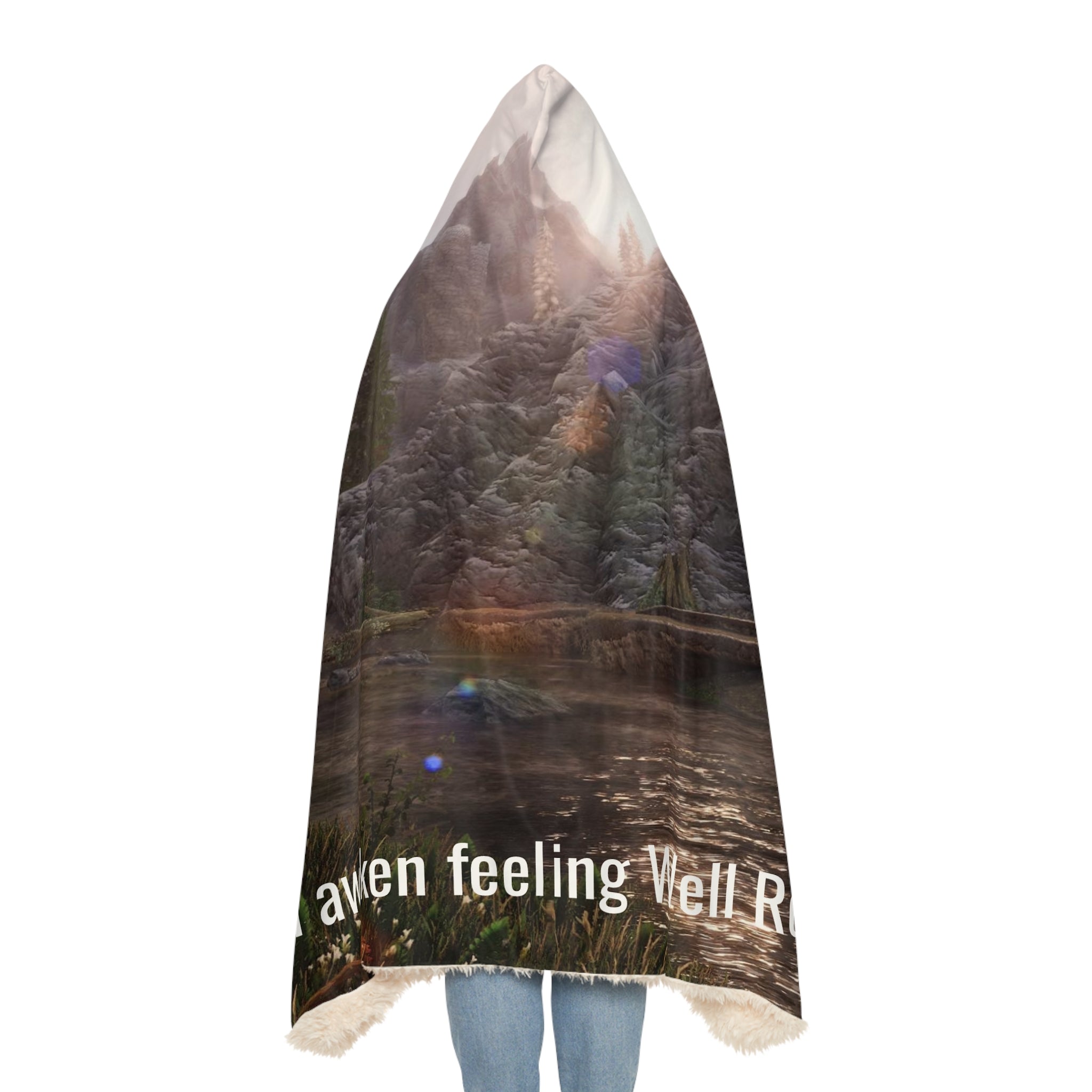 There's no need to get out of bed when you can wear a blanket all day. These incredibly comfy and soft hooded blankets are the perfect choice for cozy days at home. The 100% polyester fabric ensures durability through regular wear. We'll print your original designs onto the front of the blanket in vibrant colors and high resolution. Choose between the two inner lining options – microfleece or sherpa. .: Material: 100% polyester micro-mink outer fabric .: One size: 80" × 55" (203 x 140 cm) .: Two lining options: ultra soft microfleece or plush polyester sherpa .: Seam thread color automatically matched to design .: Elastic straps on the inside .: One-sided print