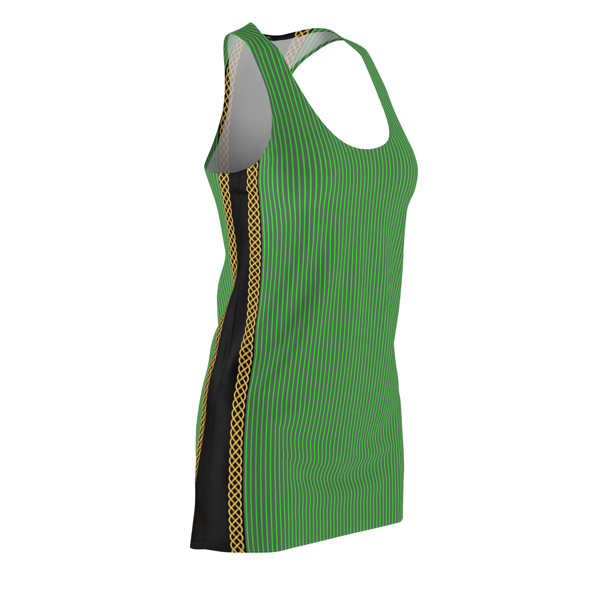 • Fabled Fashion Green HI-VIS pinstripe on Grey effect Women's Cut & Sew Racerback Dress (AOP)