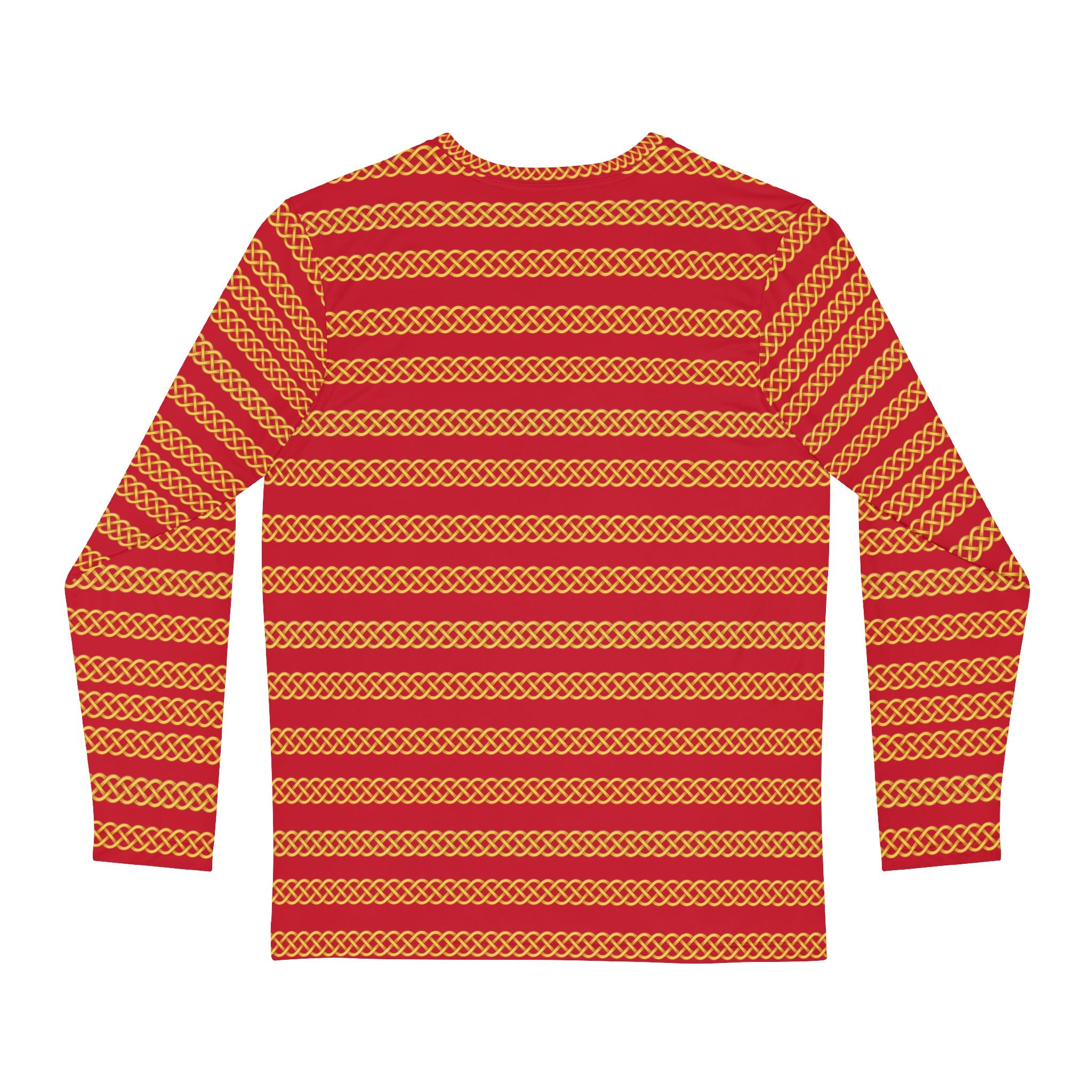 Fabled Fashion Men's Long Sleeve Red Jester Jacket on Green velvet effect Celtic knot chain AOP Shirt