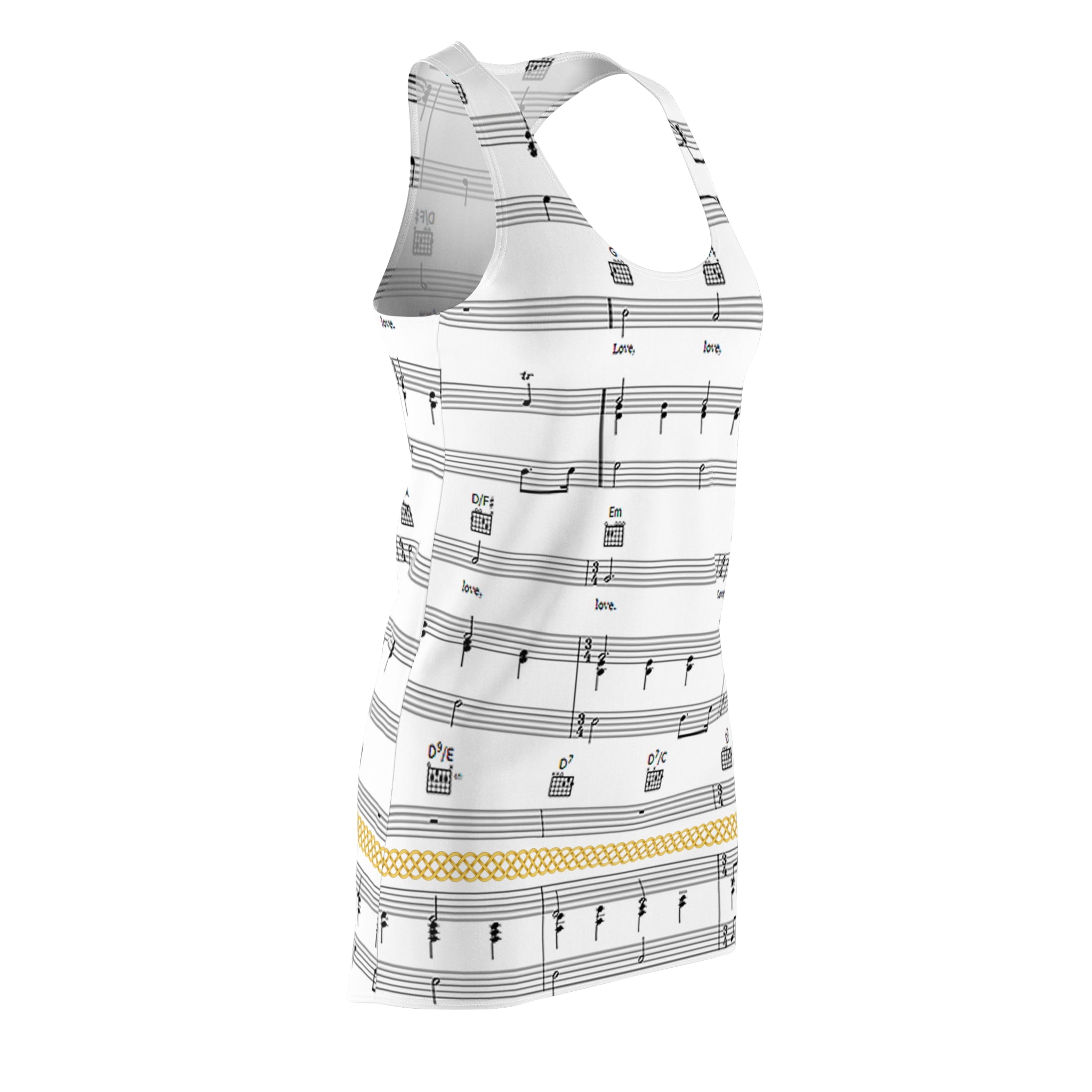 Fabled Fashion Musical stave pattern / All You need is love Celtic Knot effect Women's Cut & Sew Racerback Dress (AOP)