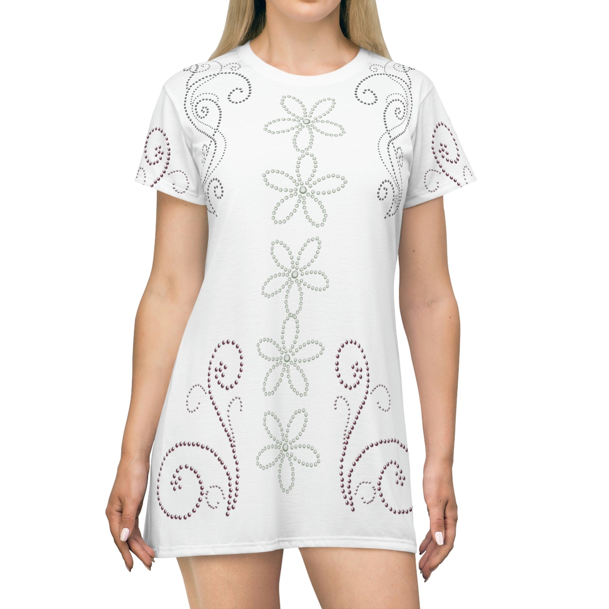 • Fabled Fashion Rhinestone All Over Print Spring/Summer T-Shirt Dress