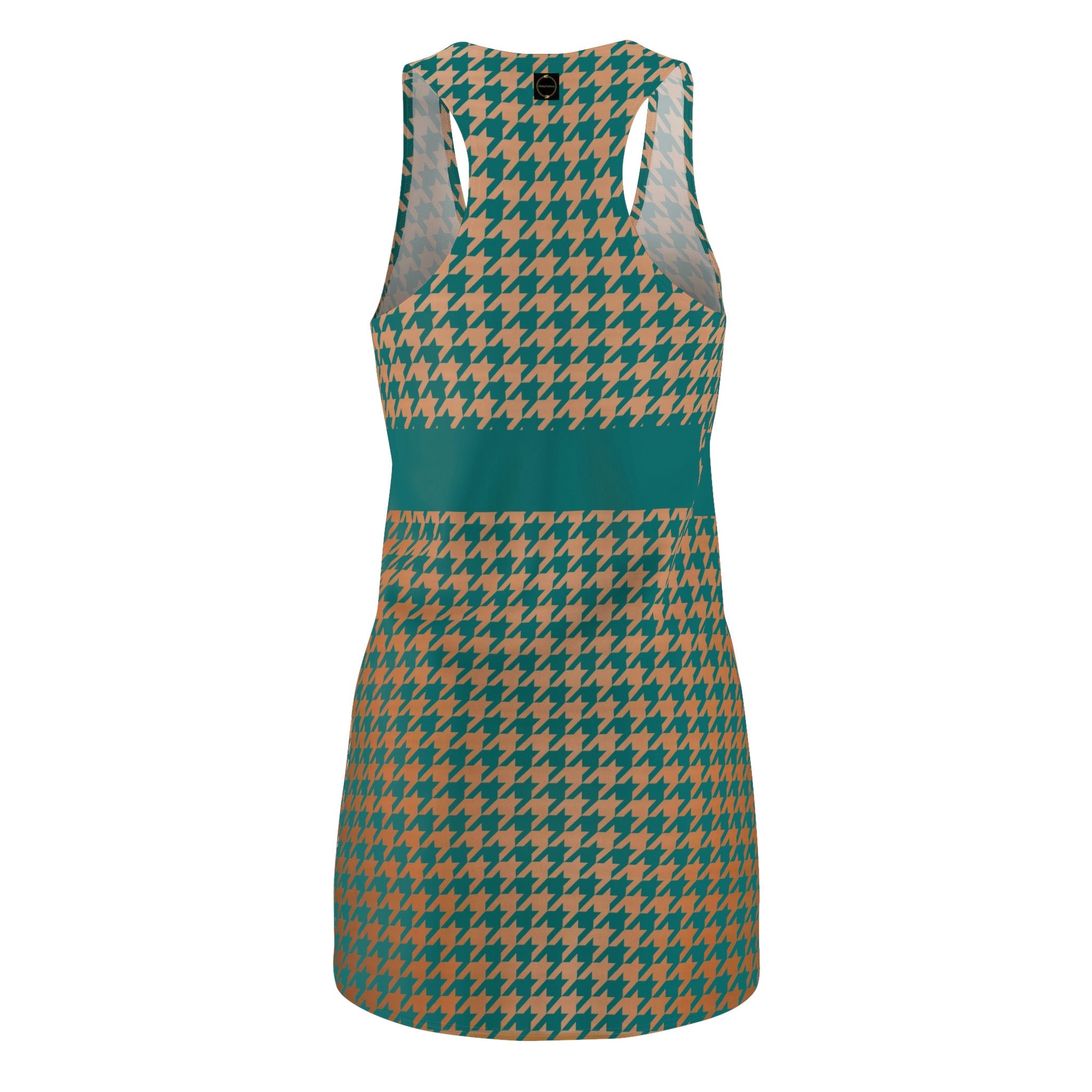 • Fabled Fashion Verdigris and Copper Houndstooth Women's Cut & Sew Racerback Dress (AOP)