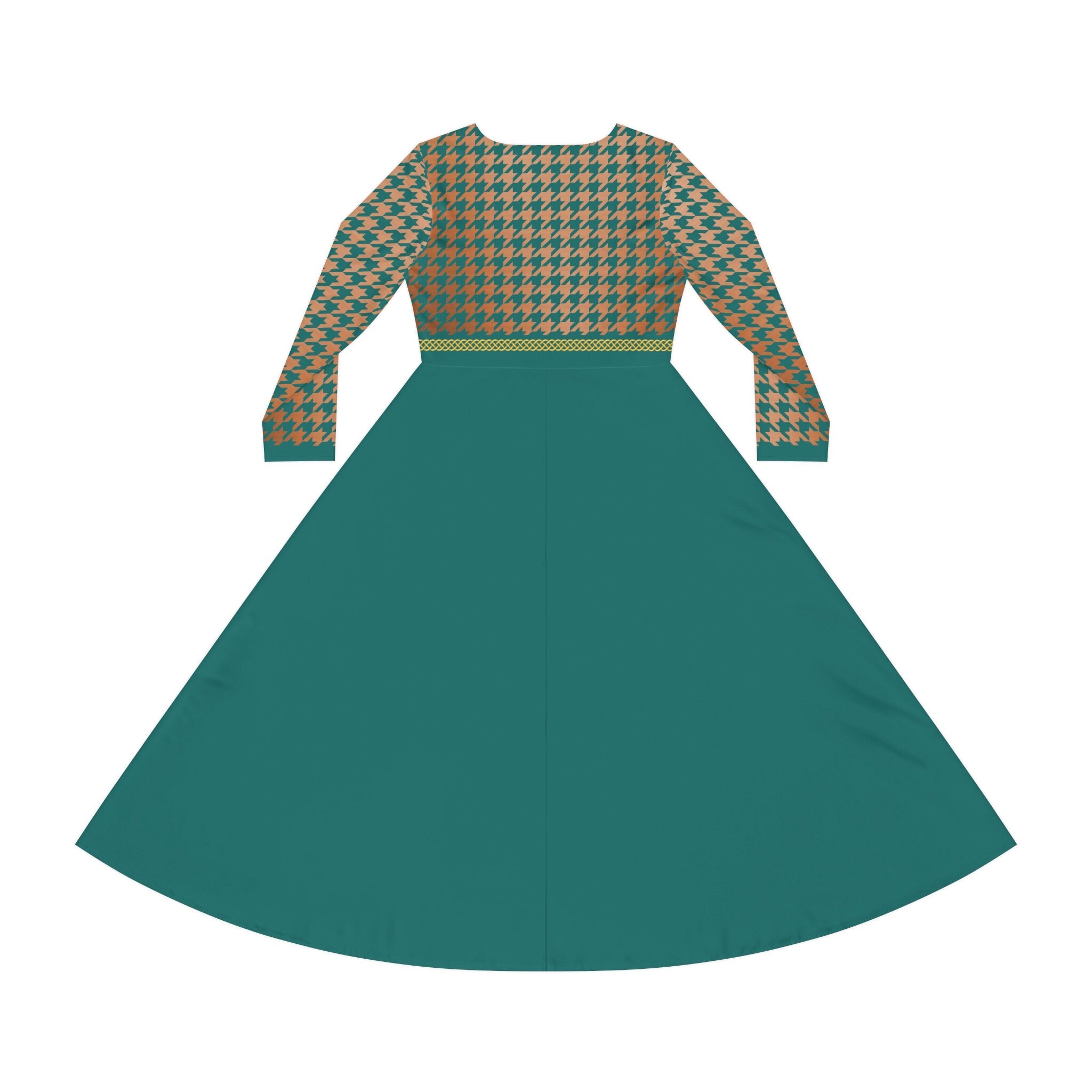 • Fabled Fashion Verdigris/Copper houndstooth and Celtic knot Women's Long Sleeve Dance Dress (AOP)