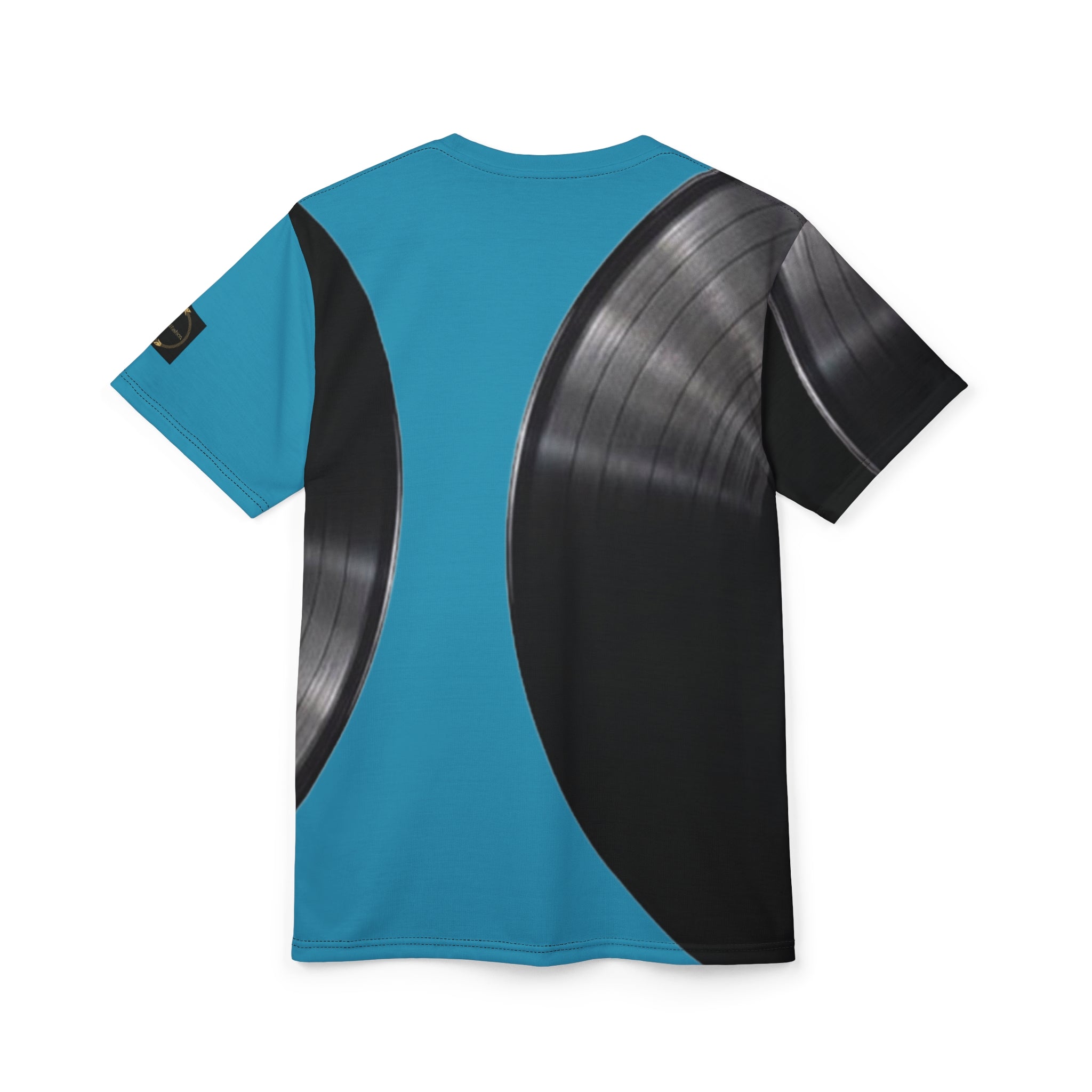 Fabled Fashion Vinyl Record design Unisex Cut & Sew Tee (AOP) Blue